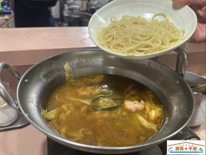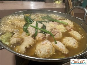この日は、鶏肉と豚肉とつくねが沢山入った、醤油と辛味噌をミックスさせた特製鍋。
