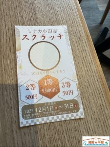 ミナカ小田原で買い物した時にもらったスクラッチ。