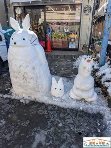 街中にある、雪だるまの力作を見て、ほっこりしながら一日を何とか終えました。
